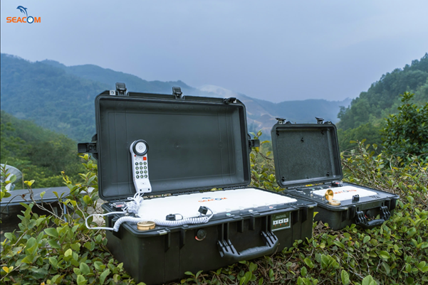 Seacom R được trang bị hệ thống nguồn với pin chính, pin dự phòng và cổng kết nối nguồn dự phòng nóng đảm bảo liên lạc không gián đoạn. Khả năng hoạt động ổn định trong môi trường mưa lớn khiến Seacom R trở thành lựa chọn tối ưu cho các đội tuần tra điện lực tuyến xã, huyện và vùng sâu vùng xa. Thiết bị được thiết kế nhỏ gọn, dễ dàng xách tay hoặc lắp đặt trên các phương tiện cơ động như xe bán tải, tàu, thuyền…, đồng thời có thể tích hợp nhanh vào quy trình vận hành hiện có.